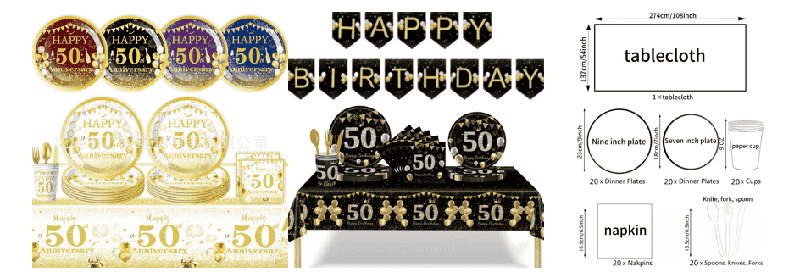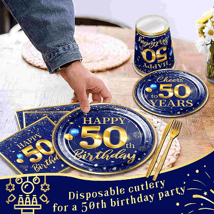 Das Einweggeschirr-Set zum 50. Geburtstag enthält einen 7-Zoll-Dessertteller, einen 9-Zoll-Hauptteller, eine saugfähige Serviette, ein Messer aus lebensmittelechtem Kunststoff, eine Gabel und einen Löffel. Der 7-Zoll-Pappteller eignet sich für Kuchen und Snacks und der 9-Zoll-Pappteller bietet Platz für Abendessen. Servietten sind weich und hautfreundlich, haben eine starke Wasseraufnahme, Kunststoffmesser, -gabeln und -löffel sind robust, sicher und ungiftig und können direkt nach Gebrauch entsorgt werden, was Reinigungsprobleme sowie Zeit und Arbeit erspart. Unser Ballon-Geschirrdekorationsset zum 50. Geburtstag eignet sich für Geburtstagsfeiern, Jubiläen, Ruhestandsfeiern und andere besondere Anlässe. Lassen Sie Ihrer Kreativität freien Lauf und nutzen Sie diese Dekorationen in verschiedenen Szenen, um jede Aktivität noch schöner und unvergesslicher zu machen.