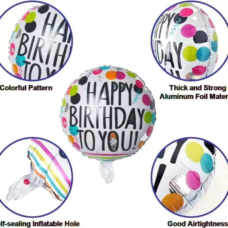 Sie bestehen aus hochwertiger Folie. Sie haben eine starke Abdichtung. Sie sind leicht und fühlen sich hochwertig an. Die Oberfläche nutzt eine schöne Drucktechnologie. Die Muster sind klar und hell. Die Farben sind lebendig und verblassen nicht so schnell. Sie können klassische Textdesigns erhalten. Dazu gehört „Happy Birthday“ auf Chinesisch und Englisch. Es gibt auch viele Stile mit Comicfiguren und Altersangaben. Sie passen zu Geburtstagsveranstaltungen für verschiedene Altersgruppen. Dies deckt Kinder bis hin zu Erwachsenen ab.