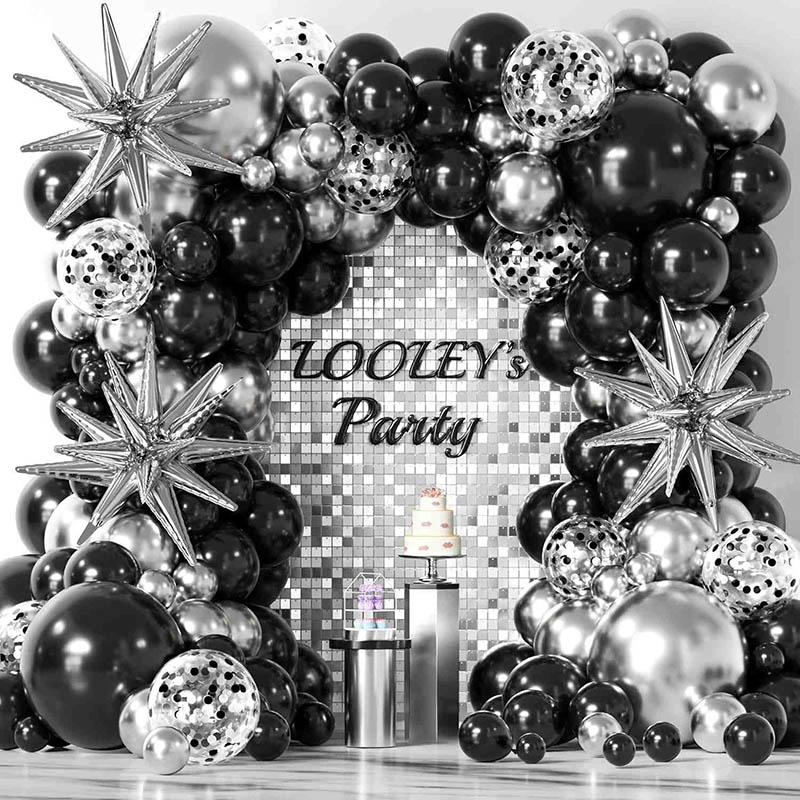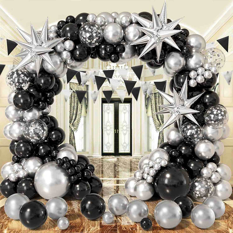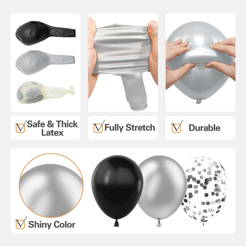 1.Kostenlose Probe von schwarzen und silbernen Ballongirlanden-Sets.
