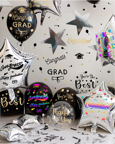 Unsere „Happy Graduation“-Ballonaufkleber sollen die fröhliche Atmosphäre von Abschlussfeiern verbessern. Jeder Aufkleber trägt einen feierlichen Satz oder ein Design, das den Erfolgsgeist widerspiegelt. Erstellen Sie mit diesen Aufklebern einzigartige Dekorationen und halten Sie unvergessliche Fotos und wichtige Momente mit Familie und Freunden fest.