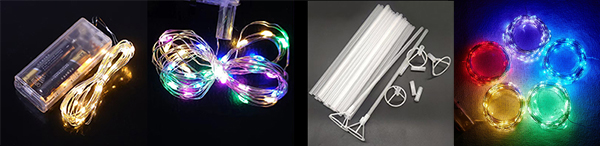 LED-Lichtleisten, Kunststoffrohr, Ballonbecher, Feder |