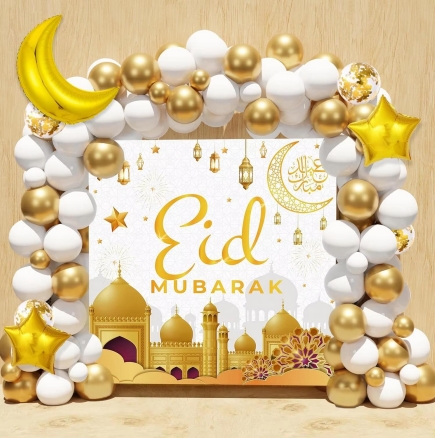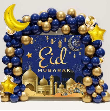Das neu eingeführte Eid al-Fitr-Ballon-Kit fügt den vorherigen grundlegenden Ersatzteilen Hintergrundtuch, Tischdecke und andere Produkte hinzu. Das Hintergrundtuch ist mit klassischen Eid al-Fitr-Elementen wie vergoldeter Halbmond, arabischem „Eid Mubarak“ und Lonicera japonica miteinander verbunden. Die Kulissenfarbe hat eine weiche weiße oder helle Kamelfarbe, die nicht nur das heilige Gefühl des Festivals behält, sondern auch die warme Atmosphäre des Familienversammlung integriert. Es wird an der Wand, dem Eingangs- oder Einkaufszentrum -Aktivitätsbereich aufgehängt und wird ohne komplizierte Installation zum visuellen Zentrum der Szene. Die neu zugegebene Tischdecke besteht aus ölfestem und wasserdichtem PE-Material mit symmetrischen geometrischen Linien, die auf der Oberfläche gedruckt sind und feine Quasten an den Kanten übersät sind. Es wird auf den Esstisch, den Anmeldetisch oder die Lebensmittelkabine gelegt. Es kann sich nicht nur mit Suppen- und Dessertflecken in der Party befassen, sondern auch seine festlichen Muster können mit Dekorationen wie Ballonketten und Fahnen wiederkommen, wodurch das Layout des gesamten Veranstaltungsortes mehr integriert wird, von der Ballongirlande in der Luft bis zum Detail des Desktops, und jeden Ort übernimmt die Wiedervereinigung und Joy von Eid al-Fitr.