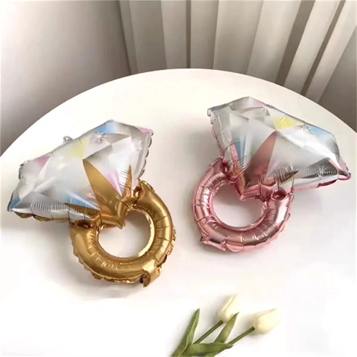 Der Gesamtstil des Verlobungsring-Folienballons ist einfach, der visuelle Effekt ist hervorragend und das in sich geschlossene netzrote Attribut kann die Umsatzsteigerung effektiv vorantreiben. Wir empfehlen Ihnen, dieses Ringballon-Set zum Kaufkatalog hinzuzufügen, um die Produktlinie zum Thema Hochzeit zu verbessern und den Bedürfnissen von mehr Verbrauchern nach einem romantischen Szenenlayout gerecht zu werden.