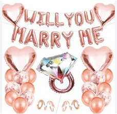 Der Stil des Anzugs besteht hauptsächlich aus Diamant-Verlobungsring-Folienballons, kombiniert mit Stern-Folienballons und thematischen runden Ballons, und das Gesamtbild ist einfach und stimmungsvoll. Gleichzeitig unterstützt es die individuelle Anpassung und kann die Art und Menge der Ballons je nach Bedarf anpassen, z. B. durch das Hinzufügen von Buchstabenfolienballons wie „I DO“ und „MARY ME“, um die Atmosphäre der Beichte und des Heiratsantrags weiter zu stärken.