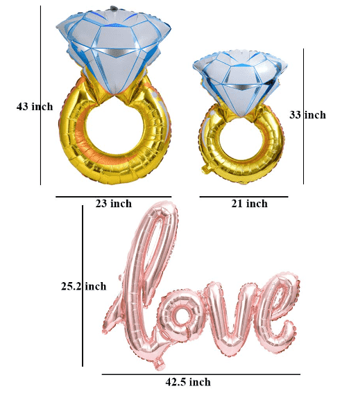 Als ikonische Dekoration der romantischen Mottoparty enthält der Verlobungsring-Folienballon eine Vielzahl von Farben und Stilen, mit exquisiten Mustern und fortschrittlicher Farbabstimmung. Das Produkt besteht aus hochfestem Aluminiumfolien-Polyester-Verbundmaterial, ist solide verarbeitet, stark versiegelt und kann bei ordnungsgemäßer Lagerung wieder aufgeladen werden. Es ist ein hochwertiges Verkaufsargument für Endverbraucher.