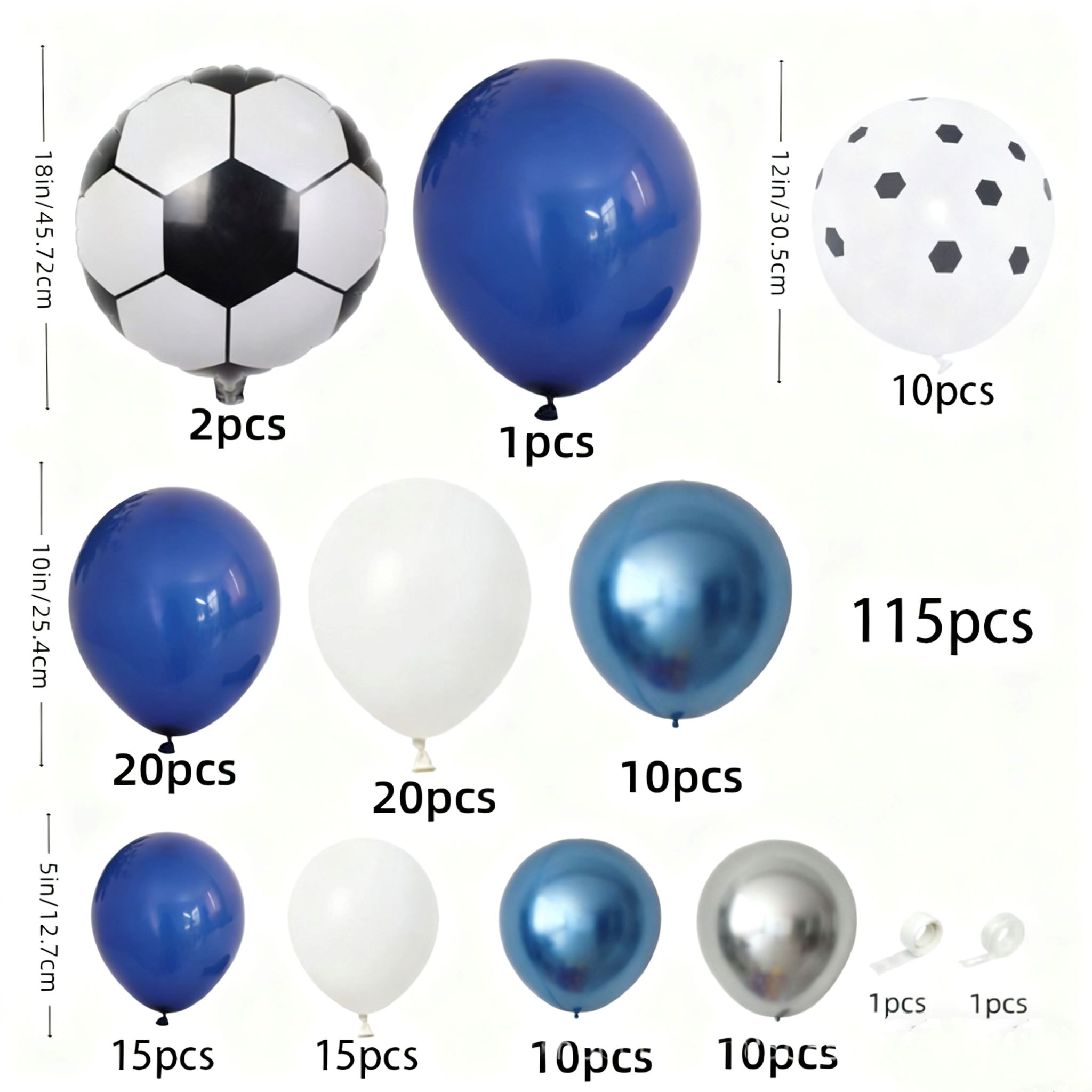 Insgesamt 115 Stück Fußball-Ballonbogen-Sets.