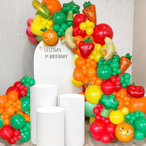 Obst- und Gemüse-Ballongirlanden-Sets: Verwenden Sie gleichzeitig Latexballons, um Ihrem Ballonanzug mehr Schichten und Fülle zu verleihen. Zum Beispiel mit einem rosafarbenen, grünen Latexballon mit Erdbeere oder einem Wassermelonen-Folienballon, um ein frisches und süßes Gefühl zu erzeugen. Verwenden Sie „Happy Birthday“-Buchstabenballons und Zahlenballons, um eine komplette Geburtstagsparty-Dekoration zu schaffen, die sich perfekt für verschiedene Partyszenen eignet.