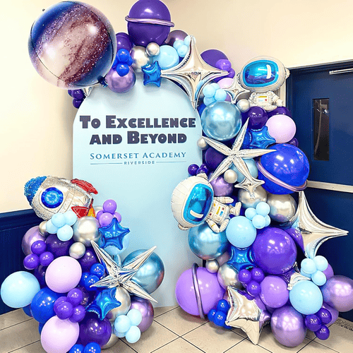 Ja, unser Designerteam hilft Ihnen bei der individuellen Gestaltung einer Ballongirlande mit Galaxie-Thema. Und Ihr Vertriebsleiter bietet Ihnen den Service aus einer Hand.