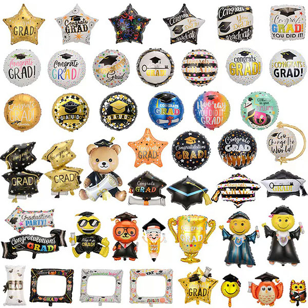 Um die Abschlussfeier der Mehrheit der Studenten zu feiern, hat unsere Fabrik speziell eine eingeführtAbschlussfolienballon. Dieser Folienballon nutzt fortschrittliche Produktionstechnologie und besteht aus hochwertigem Aluminiumfolienmaterial. Dieser Abschluss-Folienballon ist in verschiedenen Ausführungen erhältlich, mit Sternen, runden bedruckten Folienballons, Abschlusskappen, Trophäen und anderen Folienballons. Es passt nicht nur zum Abschlussthema, sondern passt auch zu den leuchtenden Farben, die eine festliche Atmosphäre schaffen können und von den Menschen sehr geliebt werden. Diese Folienballons für Abschlussfeiern sind mit selbstdichtenden Ventilen ausgestattet, um einen dichten oder schwebenden Effekt zu gewährleisten. An der Oberseite des Ballons befindet sich außerdem ein kleines Loch, sodass er problemlos in Reihe geschaltet und an die Wand geklebt oder gehängt werden kann. Um den Bedürfnissen aller Absolventen gerecht zu werden, bietet unsere Fabrik auch dieses kleine Set mit Folienballons für Abschlussfeiern, Ballongirlanden mit Folienballons für Abschlussfeiern usw. an, die Ihren Anforderungen an unterschiedliche Veranstaltungsortgrößen gerecht werden und ein notwendiges Zubehör für die Dekoration von Abschlussfeiern und den Spaß daran sind.