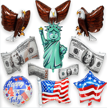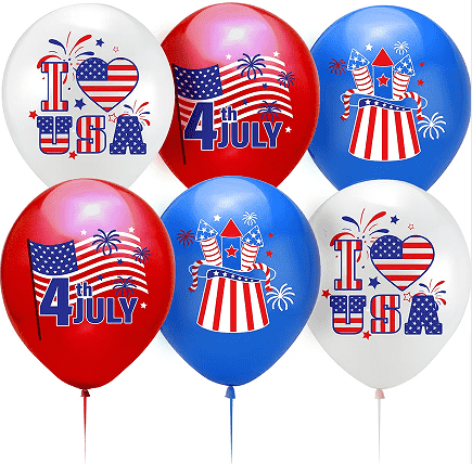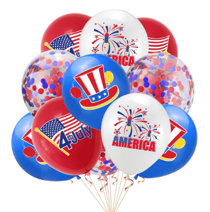 Unsere Luftballons zum Unabhängigkeitstag bestehen aus lebensmittelechtem, verdicktem Latex und hochwertiger Aluminiumfolie.