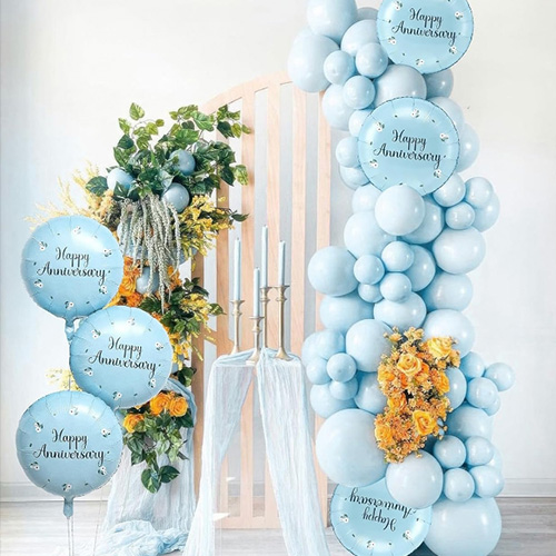 DerBallongirlanden-Set „Alles Gute zum Jubiläum“.Noch raffinierter ist es, Luftballons unterschiedlicher Form und Farbe zu einem bunten Kranz zu kombinieren. Es kann an die Wand gehängt oder als Bogen in der Tür dekoriert werden, wodurch der gesamte Veranstaltungsort lebendig wird. Egal, ob es sich um ein kleines Familientreffen oder eine große Geschäftsfeier handelt, diese Folienballon-Dekorationen zum Jubiläum können eine einzigartige Rolle spielen und zum Höhepunkt der Veranstaltung werden. Darüber hinaus bieten wir auch personalisierte Anpassungsdienste an. Wenn Sie spezielle Muster, Farben oder Größenwünsche haben, können Sie mit uns kommunizieren. Wir werden unser Bestes tun, um Ihre Anforderungen zu erfüllen und ein einzigartiges Jubiläumsdekorationskonzept für Sie zu erstellen.