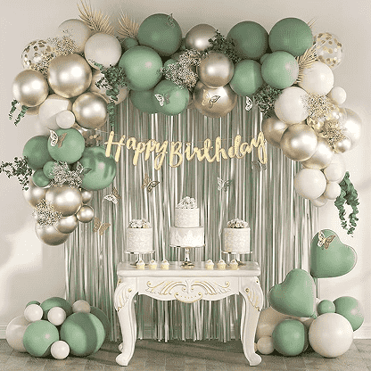 Der Grundstil ist ein Happy Birthday-Latexballon in der gleichen oder einer Komplementärfarbe mitAlles Gute zum Geburtstag-Brief-FolienballonsoderZahlen-Folienballons. Zu den klassischen Stilen gehören Makronen-Pulver-Gel-Ballon, rosa Folienballon „Happy Birthday“, schwarzer Latex-Ballon, goldener Zahlen-Folienballon. Latexballons können zu einer Ballonkette aufgereiht und an der Wand oder Decke aufgehängt werden, wobei Folienballons als optischer Mittelpunkt und ein wenig Bandverzierung verwendet werden, um schnell eine einfache und strukturierte Partyatmosphäre zu schaffen.