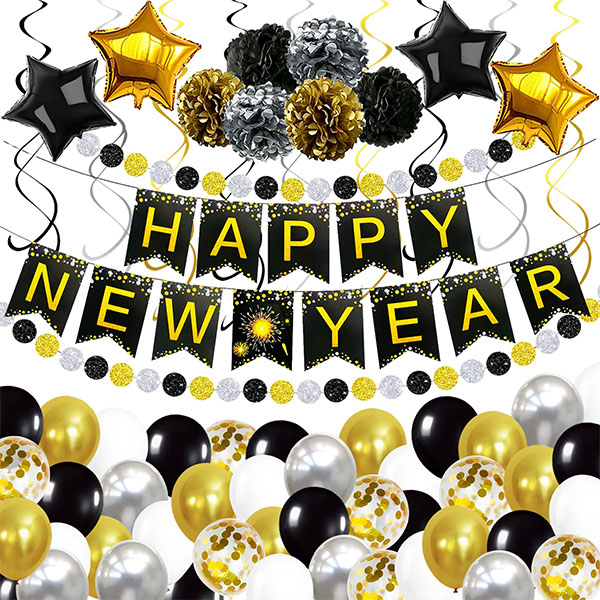 Zu den Partyartikeln zum Thema Neujahr gehört ein komplettes Set an Dekorationen, die auf Feiertagstreffen zugeschnitten sind und Ihnen dabei helfen, schnell eine warme, fröhliche und festliche Atmosphäre zu schaffen.