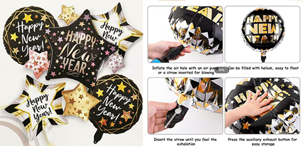 HAPPY NEW YEAR FOLIENBALLONS bestehen aus sternförmigen, runden Aluminiumfolienballons. Ihr einzigartiges Design und ihr bezauberndes Aussehen machen Ihre Party noch lustiger und sorgen für ein unvergessliches und beeindruckendes Neujahrsdekorationserlebnis. Diese aus hochwertiger Aluminiumfolie hergestellten Ballons sind langlebig, auslaufsicher und bleiben über einen längeren Zeitraum gefüllt. Sie können mit Luft oder Helium aufgeblasen werden und behalten so eine volle, dreidimensionale Form. Sie eignen sich perfekt für Innen- und Außendekorationen. Wir bieten auch individuell gestaltete Neujahrs-Folienballons an, die Sie individuell an Ihren Stil anpassen können, um alle Ihre Bedürfnisse zu erfüllen.