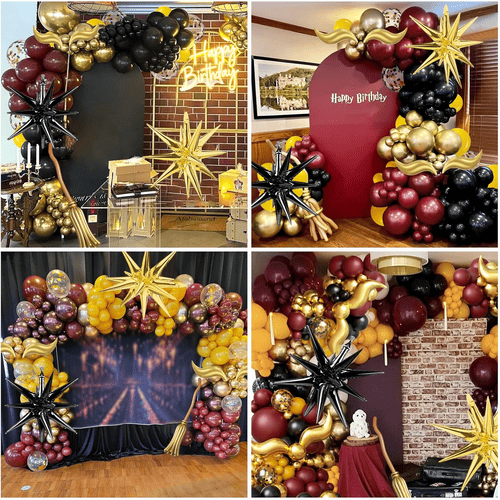 Der Latexballon im Harry-Potter-Ballonbogen besteht zu 100 % aus Rohlatex, der aus Südostasien importiert wird. Da es sich um natürliche Materialien handelt, sind sie absolut umweltfreundlich und für Kinder und Erwachsene unbedenklich. Ihre Farben sind Symbolfarben der Harry-Potter-Filme, darunter Weinrot, Gelb, Schwarz und Gold. Um weitere Schichten hinzuzufügen, haben wir auch den Konfetti-Ballon hinzugefügt, das Konfetti ist metallisch goldfarben.
