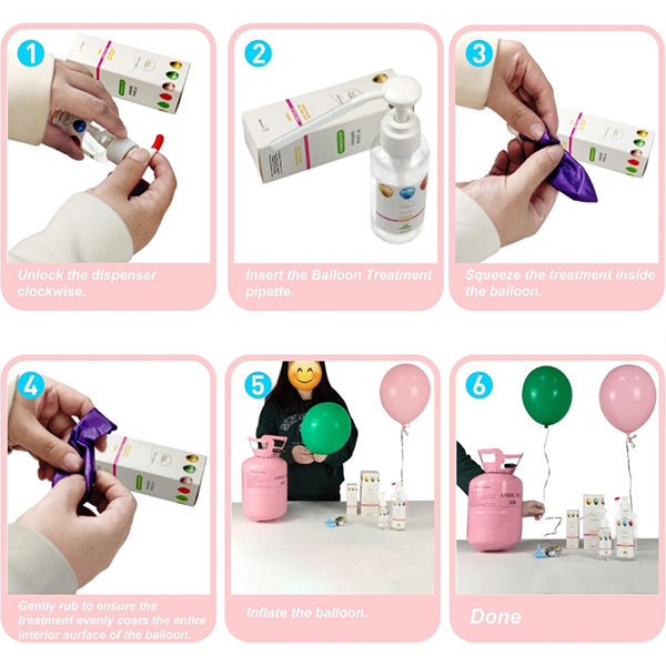 3.. Verwenden Sie die verbesserte Formel, um die Bildungszeit des Klebfilms innerhalb des Ballons effektiv kürzer zu gewährleisten. Es wurde speziell für die Verlängerung der schwimmenden Zeit von Heliumballons in warmer und feuchter Umgebung konzipiert.