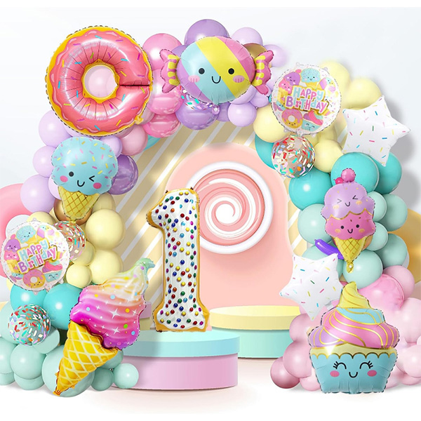 Unsere Fabrik hat auch Ballongirlanden mit Eiscreme-Folienballon auf den Markt gebracht. Diese Ballonbogengirlande umfasst Eiscreme-Folienballon, Latexballons, Ballonklebepunkte und anderes Zubehör. Diese bestehen alle aus hochwertigen Folienmaterialien und Naturkautschuk, die umweltfreundlich und schadstofffrei sind. Diese in China hergestellten Eisfolienballons können Ihnen dabei helfen, die perfekte Partyszene zu schaffen. Helle Farben und exquisite Muster machen Ihre Party noch bezaubernder und bescheren Ihren Kindern die Mottoparty ihrer Träume.