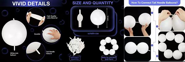 Unsere schnellen Linkballons sind von ihrem einzigartigen End-to-End-Design hervorgehoben und beseitigen die Notwendigkeit von Werkzeugen. Im Vergleich zu herkömmlichen Luftballons ist der fortschrittliche Link -Ballonverbindungsprozess einfacher und schneller, sodass Sie Ihre Party- oder Veranstaltungsort effizienter dekorieren können.