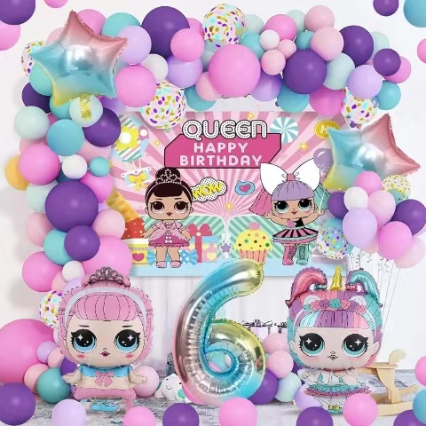 LOL Surprise Doll ist eine Marke für Blindbox-Spielzeug, die vom Unterhaltungsunternehmen MGA in den USA entwickelt und eingeführt wurde. Es hat sich zu einem der meistverkauften Spielzeuge auf dem amerikanischen Markt entwickelt. Daher ist die Umgebung von LOL auch bei Kindern auf der ganzen Welt beliebt. Aus diesem Grund hat unsere Fabrik diesen LOL-Ballon auf den Markt gebracht, der viele Arten von Ballonprodukten abdeckt, hauptsächlich Latexballons, Folienballons und Ballongirlanden. LOL-Latexballons bestehen aus Naturkautschuk, der eine gute Elastizität aufweist und mit Luft und Helium gefüllt werden kann. LOL-Folienballons gibt es in verschiedenen Formen, die eine Vielzahl von Zeichentrickfiguren aus Folienballons enthalten und die Aufmerksamkeit der Menschen auf sich ziehen können. Dieser Folienballon kann seine aufblasbare Form lange beibehalten und ist nicht leicht zu verblassen. Das Ballongirlanden-Set mit LOL-Thema enthält Latexballons, Folienballons und dekorative Elemente, die für eine schnelle Partydekoration zusammengebaut werden können. Wir unterstützen auch individuelles LOL-Ballon-Design, spezifische Muster oder Texte können an individuelle Bedürfnisse angepasst werden. Diese Produkte sind von LOL-Überraschungspuppen inspiriert und eignen sich für Kindergeburtstage, Mottopartys oder Feiern. Sie können den gesamten Dekorationseffekt verbessern.
