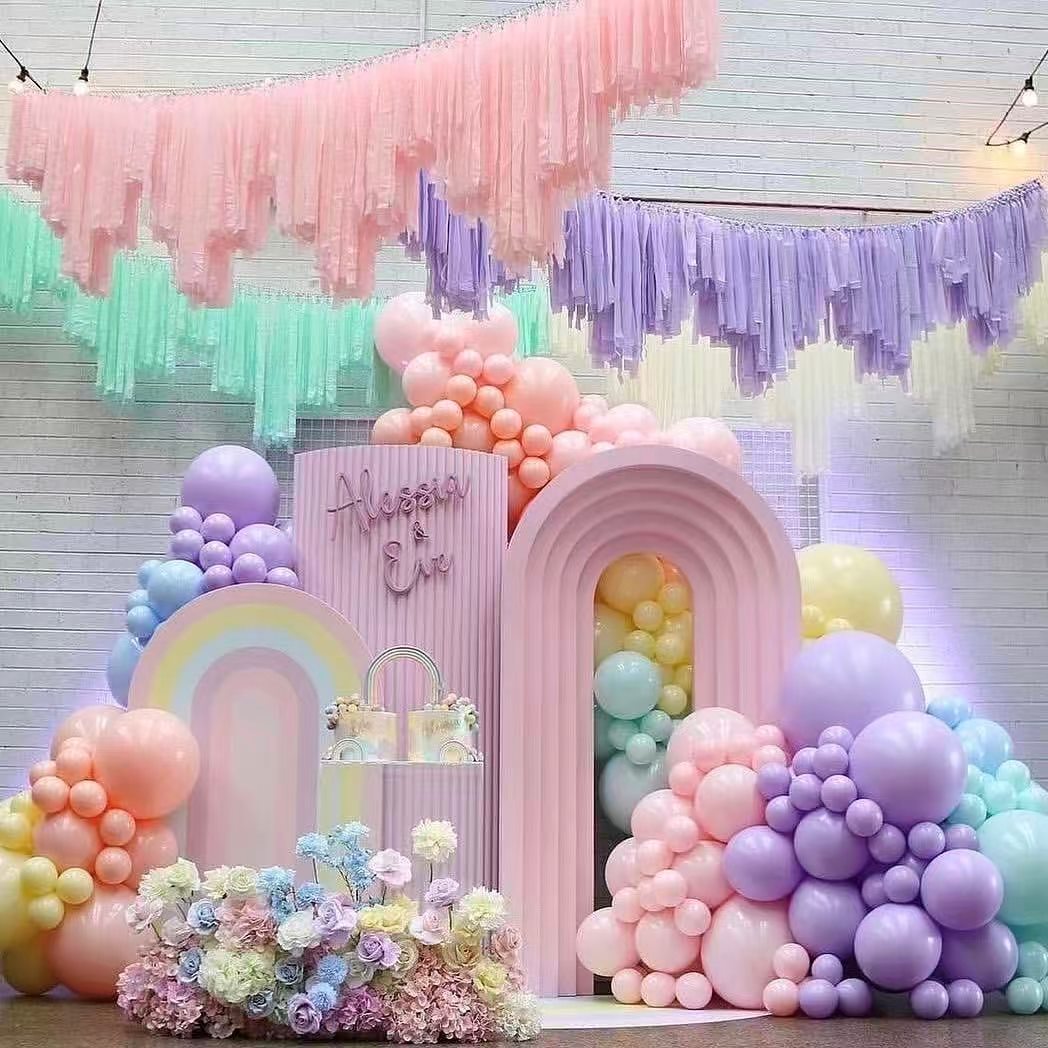Macaroon -Farmballons Garland Arch ist beliebt für seine weichen und verträumten Farben. Das gesamte Set konzentriert sich auf 12 sanfte Makromakarben. Es hat Macaroonrot, Makromakonblau, Makaroon lila und andere Farben. Jede Farbe bringt einen frischen und romantischen Look mit.