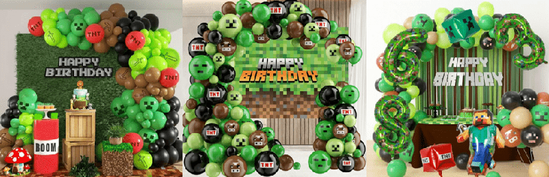 Der Anzug nimmtLatexballonsUndFolienballonsals Kernkomponenten und kombiniert die bedruckten Latexballons und Folienballons der Spielthema-Charaktere, um eine dreidimensionale Ballonkranzstruktur mit reichhaltigen Levels zu konstruieren. Das Design ist tief in die klassischen Elemente meiner Welt integriert. Der Ballon mit grüner Grastextur simuliert das Rasenquadrat im Spiel, der Ballon mit braunem Erzmuster stellt die Minenhöhlenszene wieder her und die Mini-Folienballons in Steve- und Kuli-Angstform sind damit übersät. Der Gesamtstil ist stark mit dem Originalspiel vereinheitlicht und verschiebt die Überlebenswelt des Spiels in die echte Dekoration.