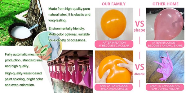 Stärkere Textur: Aufgrund der Verwendung hochwertiger Rohstoffe und fortschrittlicher Technologie weist jeder unserer Latexballons eine sehr starke Textur und satte Farben auf.