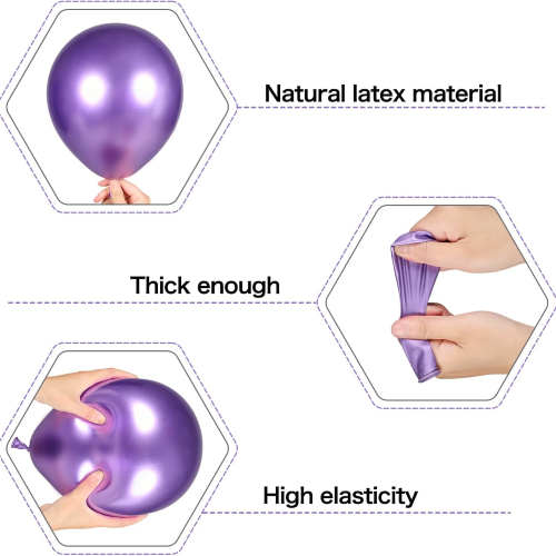 Die Menge und das Gewicht unserer lila und schwarzen Ballongirlanden-Sets sind höher als bei anderen Marken. Jedes unserer Ballongirlandenbogen-Sets enthält mindestens 100 Ballons. Jede von uns angebotene Ballongröße verwendet das branchenübliche Grammgewicht. Beispielsweise beträgt das Grammgewicht von 12-Zoll-Ballons 2,8 g. Wenn Sie spezielle Anforderungen haben, können wir auch das Grammgewicht des Ballons anpassen. Wie Sie auf den Bildern unten sehen können, reicht nur eines unserer Ballonsets aus, um ganz einfach eine stilvolle und stimmungsvolle Partyszene zu schaffen.
