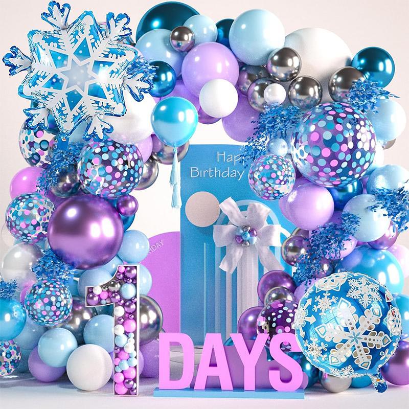 Wenn Sie auf der Suche nach einem attraktiven Deko-Highlight für Ihre Party sind, probieren Sie unseren Schneeflocken-Folienballon mit Ballon-Girlanden-Bogen-Set. Diese violett-blaue Ballonbogendekoration eignet sich sehr gut für Geburtstagsfeiern mit Frozen-Motiven, Aisha-Mottopartys, Eis- und Schnee-Mottopartys, Winterwunderland-Partys, Winter-Mottopartys, Prinzessinnenpartys, Babypartys und Brautpartys. Ob für Hochzeiten, Geburtstage, Abschlussfeiern, Verlobungen, Jubiläen, Partys zur Enthüllung des Geschlechts, Familienfeiern im Innen- und Außenbereich, dieses Ballonkranzpaket mit Schneeflocken-Aluminiumfolienballons kann Ihren Bedürfnissen gerecht werden. Unsere Partydekorationen helfen Ihnen, jeden Moment Ihrer Party zu verschönern.