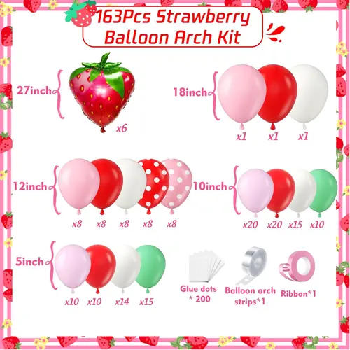 Im Lieferumfang ist eine Ballongirlande mit Erdbeermotiv enthaltenHochwertiger Latexballonund Folienballon. Mit dem süßen Erdbeer-Stil wird es von vielen Kunden auf der ganzen Welt geliebt. Dadurch haben sie für alle unsere Kunden eine gute Verkaufsleistung erbracht.