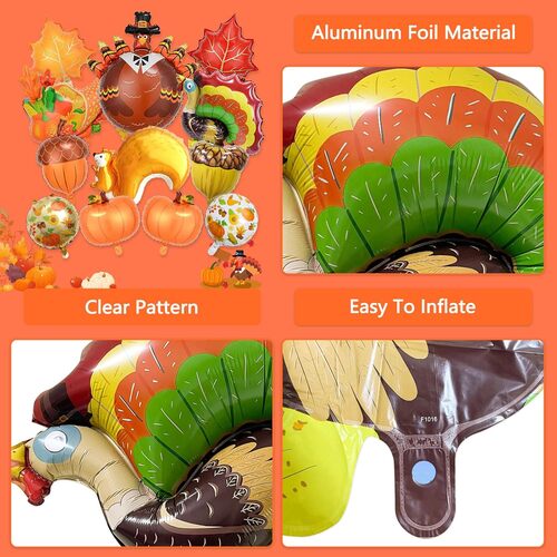 - Andere Folienballons (runde Thanksgiving-Folienballons und Thanksgiving-Buchstaben-Folienballons) sind in verschiedenen Größen erhältlich
