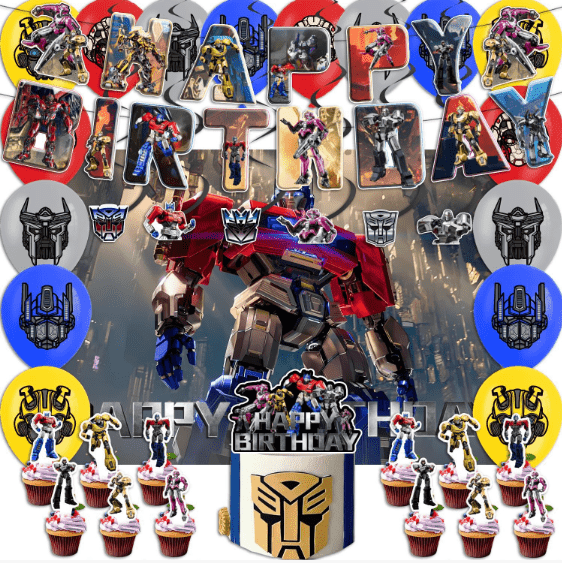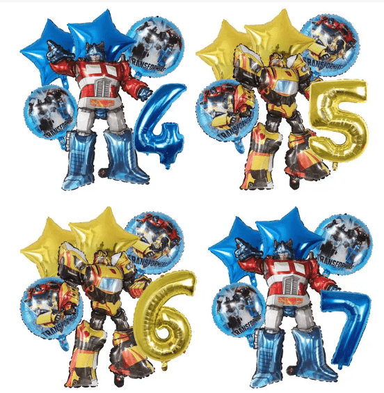 Klassische Kombination: Transformers-Folienballon mit farbiger Latexballon-Themenflagge, Latexballon als Basis, Folienballon als visueller Kern, Flagge als Themendekoration, geeignet für Geburtstagsfeiern, Festivalfeiern des Grundlayouts.