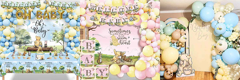 Der Stil konzentriert sich auf die klassische Winnie the Pooh IP. Es mischt Bilder von vielen süßen Freunden. Zu diesen Freunden gehören Tigger und Ferkel. Dazu passen Luftballons in frischen Macaron-Farben. Die Farben sind sanftes Blau, Rosa, Gelb, Grün und so weiter. Es ist gut für Partys mit kleinen Jungen. Es eignet sich auch gut für Partys mit kleinen Mädchen. Sie können einen passenden Farbstil finden. Beispielsweise zeigt die blaue Serie die sonnige Vitalität von Jungen. Die Pink-Serie ist voller Süße und Niedlichkeit für Mädchen.